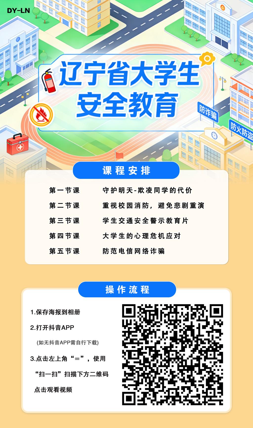 本次系列课程将通过抖音平台播放,课程重点涵盖防范校园欺凌、校园消防安全、交通安全、心理危机应对、防范电信网络诈骗等方面内容。具体安排如下: