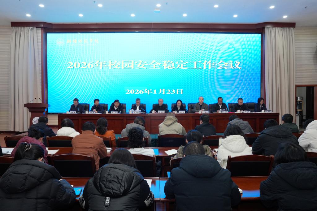 1月23日,我校召开2026年安全稳定工作会议。党委书记孙士国、党委副书记、校长笪可宁出席会议并讲话。在校全体领导班子成员出席。中层干部、相关人员参加会议。会议由副校长迟晓光主持。