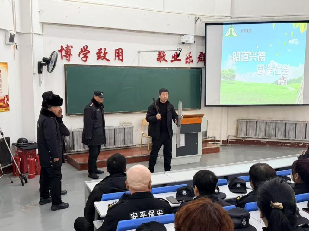 培训紧密结合本校校园治安管理实际情况,对门卫值守规范、公共区域安全巡查要点、突发事件初步应对措施以及信息上报流程进行了详尽讲解。着重强调了物业人员作为校园安全“第一响应者”所肩负的重要职责,要求全体参训人员进一步增强责任意识,熟练掌握安全警示标识设置规范,常态化开展校园治安及安全隐患排查工作,实现早发现、早处置、早上报。